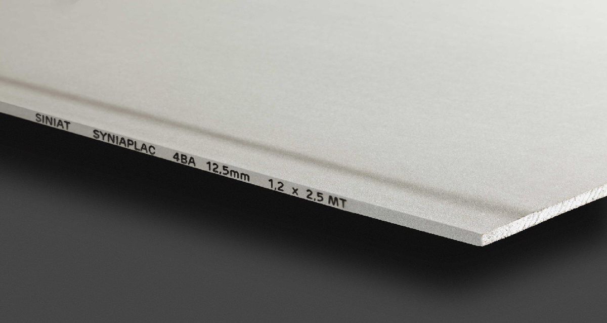 SyniaPlac BA13 is a plasterboard with four tapered edges, 12,5 mm thick, for the construction of planar ceilings whithout foults.