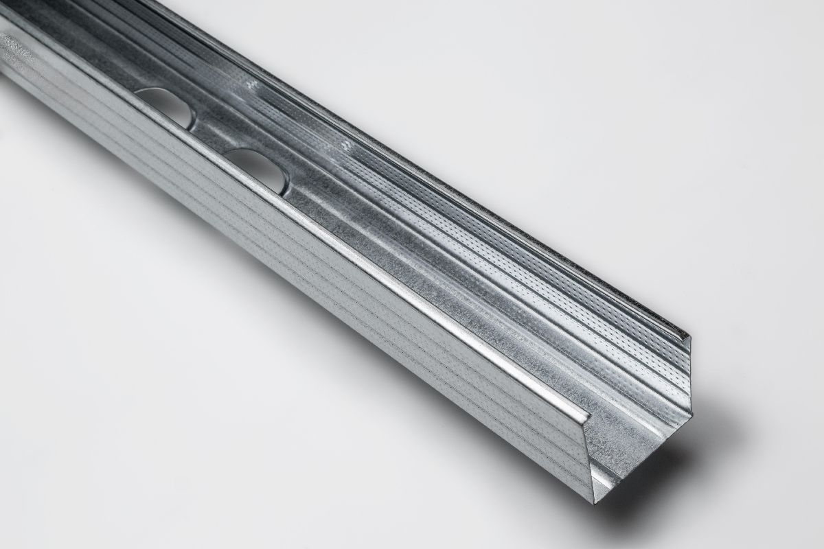 Standard stud galvanized steel type DX51D + Z 6/10 mm thick with C 47/74/50 mm section, perforated to facilitate the electric cables passage, used in combination with U tracks of the same size, in the realization of metal frameworks for walls, linings and self-supporting ceilings Reference standard: UNI EN 14195